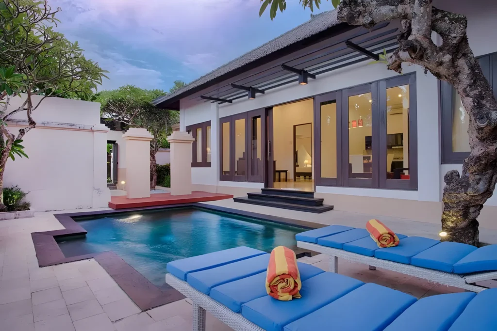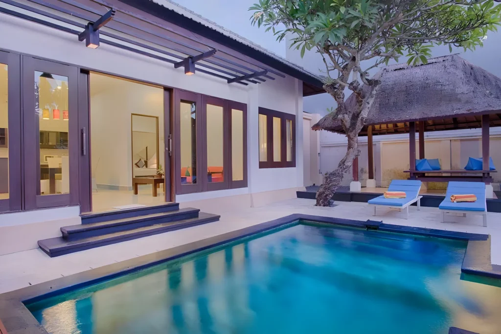 Our villa complex offers choice of 1 and 2 bedrooms villa in Seminyak area, with private pool, surrounded by tropical garden, equipped with a kitchenette.