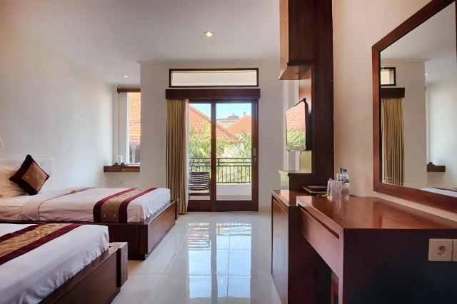Mixed review for the Baleka. Fantastic location walking distance to pubs and restaurants. Booked pool side access ,hand held shower over the bath but very low which made it hard to wash your hair. Room is right next to restaurant which has live bands every night that are very loud,at least the music stops at 11pm. The staff are wonderful very kind and friendly. Special mention to Fitria who made our stay very enjoyable great worker always with a kind smile.
