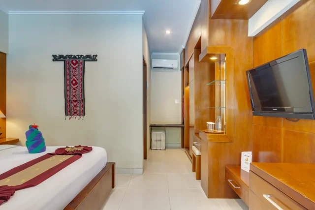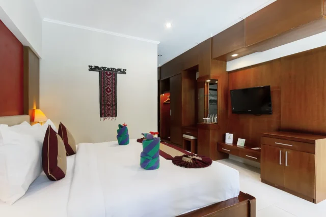 Located on the ground floor and designed to accommodate up to 2 persons, with the option of a queen bed or twin beds. Its terrace overlooks the tropical garden and swimming pool. These 36 m2modern-minimalist rooms come with a 32-inch flat-screen TV, Air Conditioning, en-suite bathroom, bathtub shower, and amenities